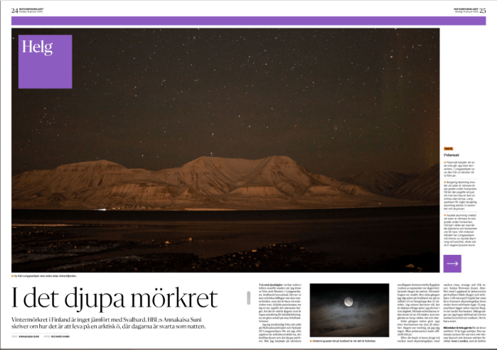 Texter Mina texter publiceras bland annat i Filter, Svenska Dagbladet, Hufvudstadsbladet, Me Naiset och Helsingin Sanomat. Här kan du läsa några av dem. Intervju med Sofi Oksanen – SvD 17.1.2021 Fotograf: Anna Autio Samtal med Andreas Styrsell – Filter 3/2020 Fotograf: Dagmara Wojtanovicz I det djupa mörkret – HBL 19.1.2020 Fotograf: Richard Hann och Magdalena Wutkowska Världskänt experiment läggs på hyllan – SvD 3.3.2018 Fotograf: Staffan Löwstedt De älskar livet i Ingå – HBL 17.3.2019 Fotograf: Lina Enlund Intervju med Jörn Donner – SvD 11.2.2018 Fotograf: Staffan Löwstedt Äärirajoille – Me Naiset 18/2020 Meillä on toivoa – Vihreä Lanka 7.7.2016 Fotograf: Anna Autio Venlan valinta – Vihreä Lanka 22.6.2016 Illustration: Iiro Törmä Dela detta: Dela på X (Öppnas i ett nytt fönster) X Dela på Facebook (Öppnas i ett nytt fönster) Facebook Gilla Laddar in …